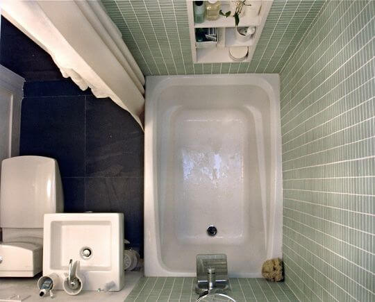 - Je potřeba si uvědomit, že pokud zvolíte vanu do malé koupelny, bude vedle ní muset být WC nebo umyvadlo. Zdroj: pinterest.com